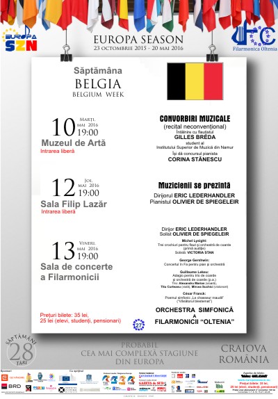 Muzicienii belgieni care vor urca pe scena Filarmonicii „Oltenia” sunt dirijorul Erich Lederhandler ÅŸi pianistul Olivier De Spiegeleir.