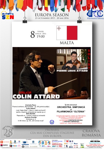 Colin Attard, dirijor ÅŸi compozitor, născut într-o familie de muzicieni, este o personalitate a insulei malteze Gozo, contribuind în mod esenÅ£ial la dezvoltarea ei muzicală. În 1990, a înfiinÅ£at Corul „Gaulitanus” ÅŸi a creat Festivalul InternaÅ£ional de Muzică „Gaulitana”, care are loc în primavara fiecărui an. Actualmente, este dirijor al Operei Aurora din Malta ÅŸi autorul lucrării „Spre o viaţă mai bună” care va fi interpretată, în primă audiÅ£ie, la Craiova, de violonistul Pierre Louis Attard ÅŸi Orchestra simfonică a Filarmonicii „Oltenia”.
